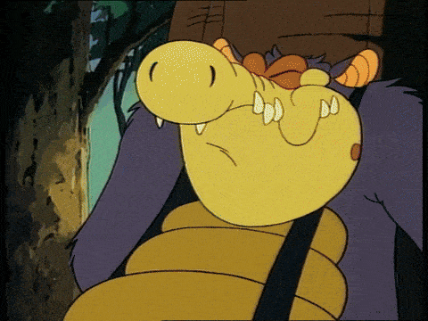 This character refers to the purple creature as "Gatorpossum", which roughly tells you what Gatorpossum looks like a combination of, as the new arrival gets annoyed about how filthy Gatorpossum's living space is. As he lands, he tells him to get up and spins the hammock around, dumping Gatorpossum into the swamp. Gatorpossum initially threatens to beat up whoever woke him, until he realises who it is, indicating even this tough-looking animal is scared of our main villain.
